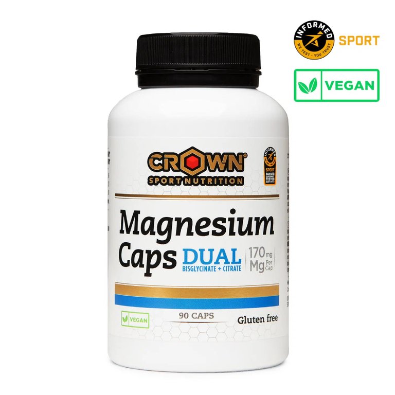 Magnesium Caps DUAL (90 caps) Capsules with 170 mg of magnesium from the two most absorbable and bioavailable sources; magnesium bisglycinate and citrate. Banned substance tested by Informed Sport. Vegan and allergen-free. Only 3 ingredients.