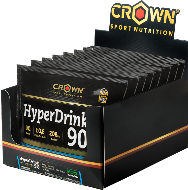 HYPERDRINK 90 – HIGH-CARBOHYDRATE DRINK HyperDrink 90 is a high-quality powdered high-carbohydrate drink, ideal for athletes who need an effective source of energy during long training sessions or competitions. One 500 ml serving provides 90 g of carbohydrates plus extra sodium (208 mg), both key elements to enhance performance. BENEFITS OF THIS HIGH-CARBOHYDRATE DRINK HyperDrink 90 contains the optimal mix of carbohydrates, Maltodextrin and Fructose, in a 1.25:1 ratio (commonly known as 1:0.8), as supported by science. Studies show that in prolonged exercise, using carbohydrates absorbed via different intestinal transporters (GLUT) is the only way to increase the assimilation and oxidation rate of exogenous carbohydrates beyond 60 g/hour (Currell, K. et al., MSSE. 2008; Earnest, C.P. et al., JSCR. 2004). Research indicates that combining a glucose source (maltodextrin) with fructose is ideal.Why use the 1.25:1 (1:0.8) ratio instead of 2:1 or others? Because recent research shows that this ratio achieves the maximum oxidation of exogenous carbohydrates, ensuring maximum energy efficiency from consumed carbs. This is crucial when high carbohydrate intake is required in small fluid volumes (90 g / 500 ml), ensuring most of it (74% efficiency) is converted into energy without causing gastrointestinal distress (Rowlands, D.S. et al., SM. 2015). ADVANTAGES OF MALTODEXTRIN IN A HIGH-CARBOHYDRATE DRINK Scientific literature shows maltodextrin is the best source when seeking high efficiency in glucose use, especially for high-carb intakes in small volumes. It allows higher oxidation of exogenous carbohydrates compared to other glucose sources like cyclodextrin (Cluster Dextrin®) or isomaltulose (Palatinose®). While Cluster Dextrin® may help reduce gastrointestinal issues due to osmotic properties, it lacks evidence of higher energy efficiency. Isomaltulose contains both glucose and fructose but shows 41% lower energy efficiency than sucrose (Achten, J. et al., JN. 2007). Also, maltodextrin’s larger molecular size reduces the mixture’s osmolality, minimizing gastrointestinal distress during heavy carbohydrate intake (Rowlands, D.S. et al., SM. 2022).Conclusion: While glucose and maltodextrin have similar energy efficiency, maltodextrin is better osmotically. It also contributes less sweetness, which is preferred in this product.Summary: For high-carb products consumed during exercise, the goal is maximum energy efficiency and minimal gastrointestinal issues. Current research confirms this is achieved only by combining Maltodextrin and Fructose in a 1.25:1 ratio (or 1:0.8) (Rowlands, D.S. et al., SM. 2022). SODIUM IN HYPERDRINK 90 HIGH-CARBOHYDRATE DRINK To complete the formula, we added sea salt as a source of Sodium (Na). Sodium is the most important electrolyte during physical activity since it’s the one most lost through sweat and is essential for hydration (Panel NDA. EFSA Journal. 2011). The added amount fits within the range that optimizes water and carbohydrate absorption in the intestines (Shi, X. et al., IJSNEM. 2010; O’Brien, W.J. & Rowlands, D.S., AJPGLP. 2011). Perfect solubility! Many drinks of this kind on the market suffer from poor solubility or become unstable over time. After selecting the best raw materials and running several tests, we developed a product with perfect solubility: it dissolves in minutes and remains stable over hours. No flavor! Designed for maximum effectiveness in energy and digestion, this high-purity product has no added flavor. It only has a subtle natural sweetness from fructose. It contains no flavorings, preservatives, sweeteners, colorings, or any other additives.Flavors: Neutral.Format: Single-dose sachets of 93.1 g and 1.49 kg tubs (16 servings). 2 scoops = 93.1 g.Technical details: – Osmolality: 817 mOsmol/kg – Osmolarity: 725 mOsmol/l – pH: 5.52 |